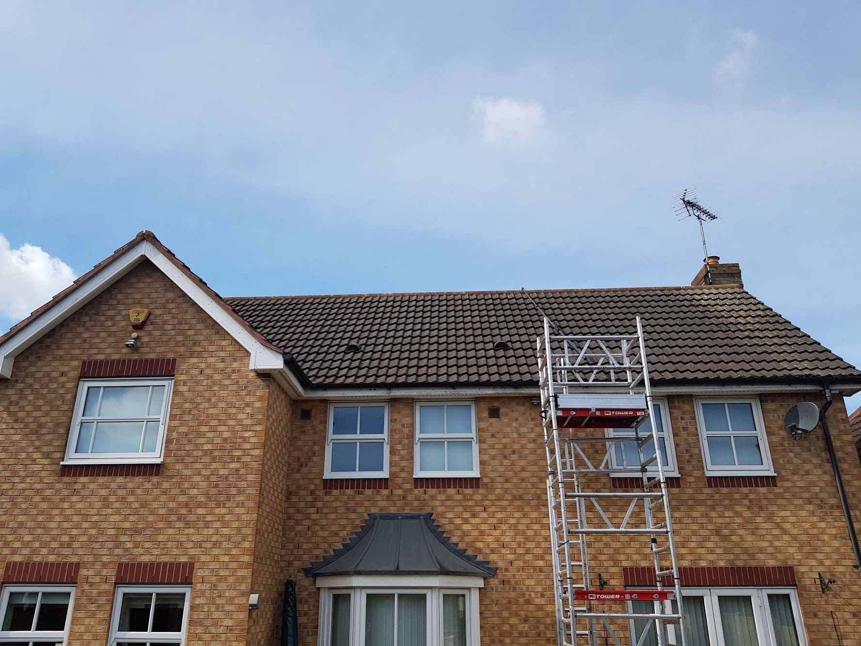 Step 2 — Safe access setup We position ladders, tower scaffolds, or working platforms before any work begins. We do not walk across your tiles unnecessarily. All work is carried out from safe, stable access — protecting both your roof surface and our team.