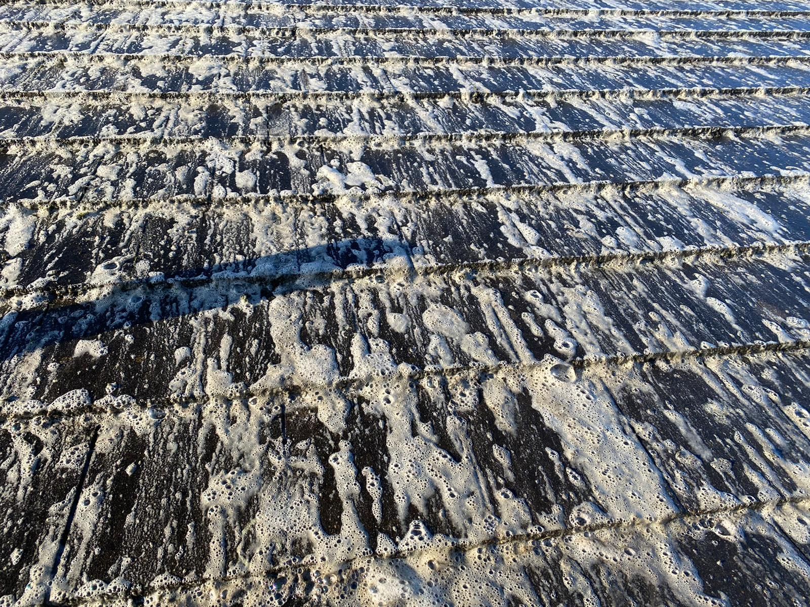 Step 5 — Professional biocide treatment A professional-grade biocide is applied across the full roof surface after cleaning. This product is not available in supermarkets or DIY stores. It penetrates tile pores and kills remaining spore systems and root structures left after physical removal. This is the step that prevents rapid regrowth — most treated roofs in Nottingham stay clean for three to five years. The treatment is biodegradable and safe for plants, garden drainage, and wildlife.